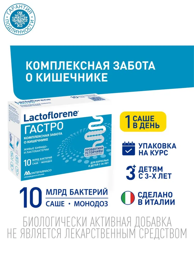 БАД Lactoflorene Гастро для восстановления микрофлоры кишечника, 10 саше