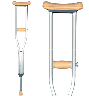Стойки и ножки костылей изготовлены из алюминиевой трубы. Подмышечник и ручка изготовлены из пластмассы и для дополнительного удобства снабжены резиновыми накладками-валиками |