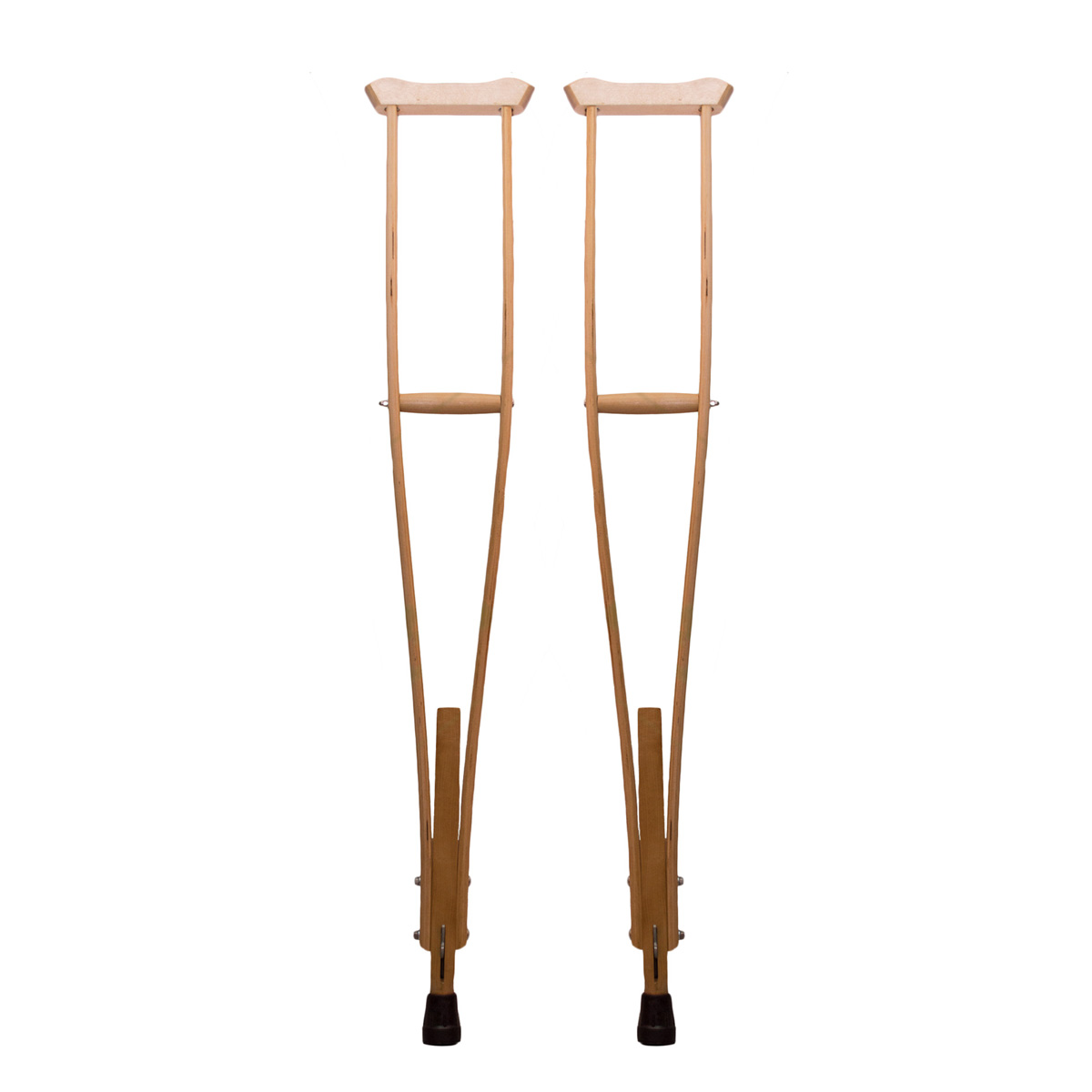 Стойки костылей изготовлены из клееного березового шпона, ножка из цельной древесины, подмышечник и ручка из пластмассы. В качестве защитного покрытия используется несколько слоев нитролака |