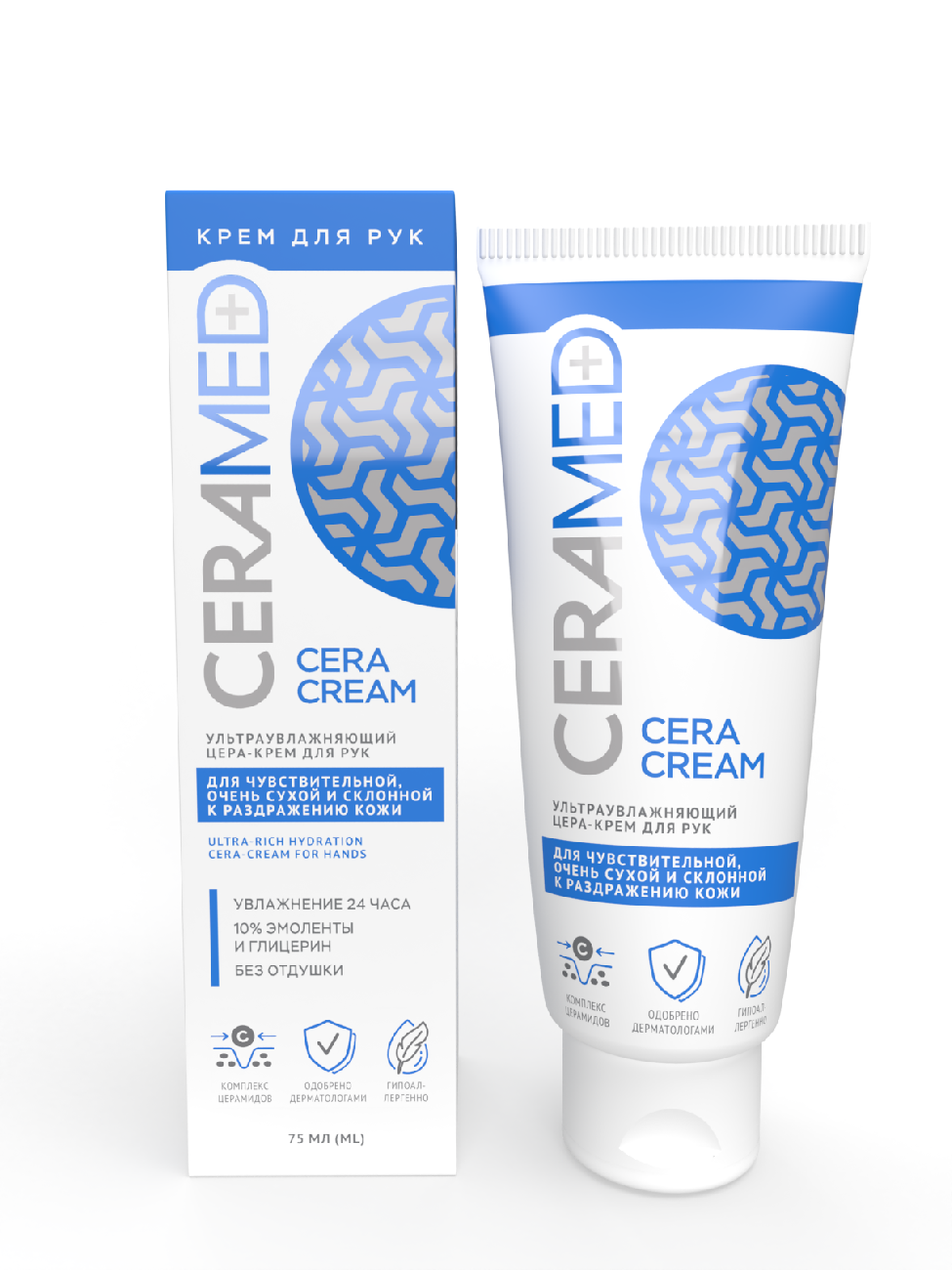 Кожа рук чаще всего подвержена агрессивным воздействиям со стороны окружающей среды. Качество воды, перепады температуры и солнечные лучи истощают липидный слой кожи и запасы влаги в ней. Кожа теряет свою эластичность. Биосинергия компонентов позволяет Цера-Крему глубокого увлажнять и интенсивно питать кожу рук, оставляя ее мягкой и увлажненной в течение длительного времени. Идеально подходит для чувствительной, очень сухой и склонной к раздражению кожи. Базовый принцип создания продуктов Ceramed заключается в Биосинергии компонентов с доказанной эффективностью, направленных на решение конкретных задач. Церамиды — ключевые структурные элементы рогового слоя, оказывающие влияние на проницаемость кожи в обоих направлениях. Несут в себе функцию межклеточного липидного цемента. При повреждении кожи — заполняют межклеточное пространство, уменьшают трансэпидермальную потерю влаги. Эмоленты — создают защитный барьер на поверхности кожи, удерживая в ней влагу и защищая кожу от внешнего воздействия.